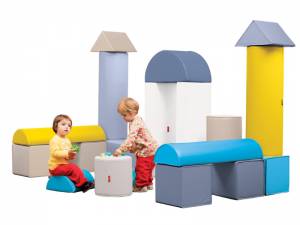 Protezioni murali e per pavimentazioni, didattica (piscine, divanetti, pouf, tappetoni, cubi, parallelepipedi, cerchi, scalette, animali, percorsi, etc), attrezzature sportive